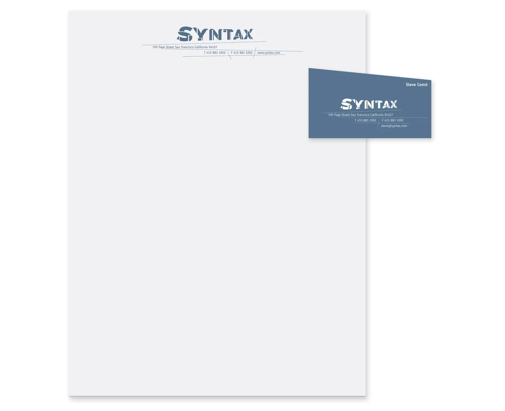 Syntax was an architectural firm focused on using economical and recycled materials in innovative ways. Their architecture is modern and expressive, with angular shapes and artful lighting that brings out the forms. This identity uses deconstructed typography to reflect the firm’s sculptural architecture.